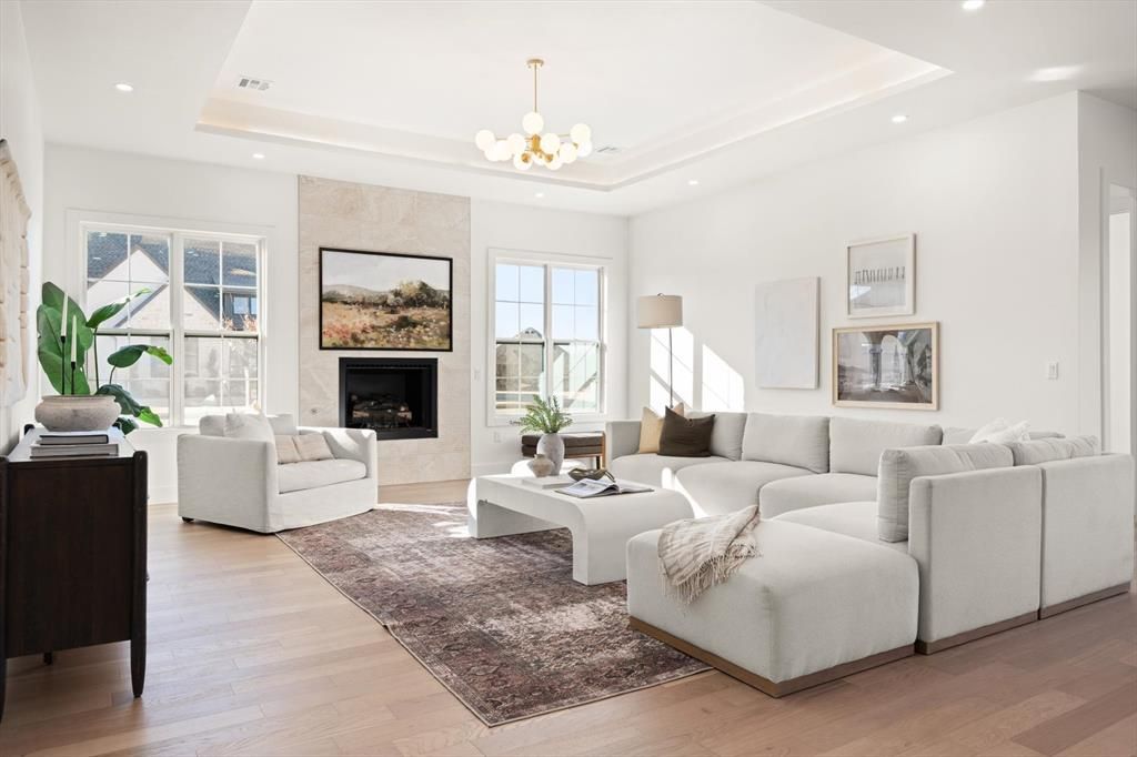 Welcome to a stunning new home at 10049 SW 27th Street, ideally situated on a corner lot in the gated Crystal Creek at Westbury community. Thoughtfully designed with luxury living in mind, this home offers spacious gathering areas, private bedroom suites, and flexible spaces ideal for both everyday moments and special occasions. The living room is a true showpiece, anchored by a dramatic tiled fireplace and enhanced by elegant tray ceilings that add depth and architectural interest. Perfect for entertaining, the kitchen's generous island and open flow invite conversation, connection, and memorable gatherings. The kitchen features a gas range, kitchen refrigerator, and custom white oak cabinetry with abundant storage. The private primary suite offers a serene retreat with sliding glass doors leading to the backyard and a spa-inspired bathroom complete with dual vanities, a freestanding soaking tub, and a glass-enclosed shower. The primary closet is outfitted with custom built-in cabinetry, a makeup vanity, and a full-size dressing mirror, creating a refined dressing experience. Entertaining is seamless with a covered patio and a gas line ready for your outdoor grill. Inside, the home continues to impress with a dedicated study, three additional bedrooms each with private baths, a mudroom area, and a well-appointed laundry room with built-in storage and a utility sink. A thoughtfully designed fourth bedroom serves as the perfect flex room, easily adapting to your lifestyle needs. High ceilings, tall doors, abundant natural light, and wood flooring throughout create a warm and inviting atmosphere. Additional features include Wi-Fi-enabled garage doors, a tankless water heater, zoned irrigation system, ring doorbell, & an EV-ready garage outlet. Ideally located in Yukon with quick access to major highways, shopping, dining, and the airport, this exceptional residence pairs premium finishes, thoughtful craftsmanship, and effortless indoor-outdoor living. Welcome Home!