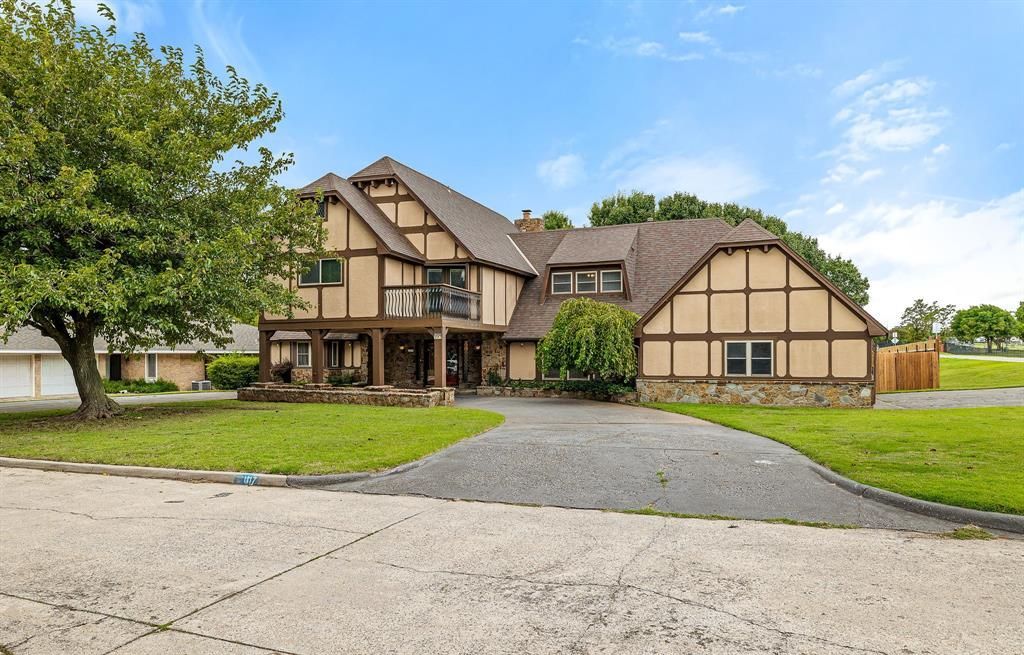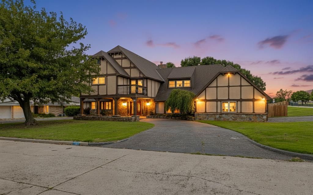 Say hello to this well-loved and beautifully maintained home is ready to welcome its next owners. Offering 4 bedrooms, 2.5 bathrooms, and 3,299 square feet of living space, it sits on a spacious corner lot in a highly sought-after neighborhood. Step through the double doors into a warm and inviting living space that features a wet bar, making it the perfect gathering spot for family and friends. Just off the entry, a versatile bonus room provides endless possibilities-it can serve as a cozy den, home office, craft room, or even a fifth bedroom. Across the entry, the formal dining room is lined with large windows that flood the space with natural light, creating an ideal setting for dinners and celebrations. The kitchen is both functional and welcoming, with stainless steel appliances, ample counter space, and an eat-in dining area that overlooks the backyard. Upstairs, four bedrooms provide comfort and privacy. Two guest rooms share a Jack-and-Jill layout, highlighted by a striking black soaker tub and accented with stained-glass windows for a touch of elegance. One guest room also opens to a private balcony with views of the backyard. The primary suite is generously sized, offering an en-suite bathroom and access to a second balcony-an ideal spot to enjoy your morning coffee or unwind at the end of the day. Outdoors, the backyard is shaded by mature trees and provides plenty of room for entertaining, gardening, or play. The oversized garage includes an in-ground storm shelter for peace of mind. Blending character, space, and thoughtful details, this home is a rare find in a well-established community and is ready for its next chapter.