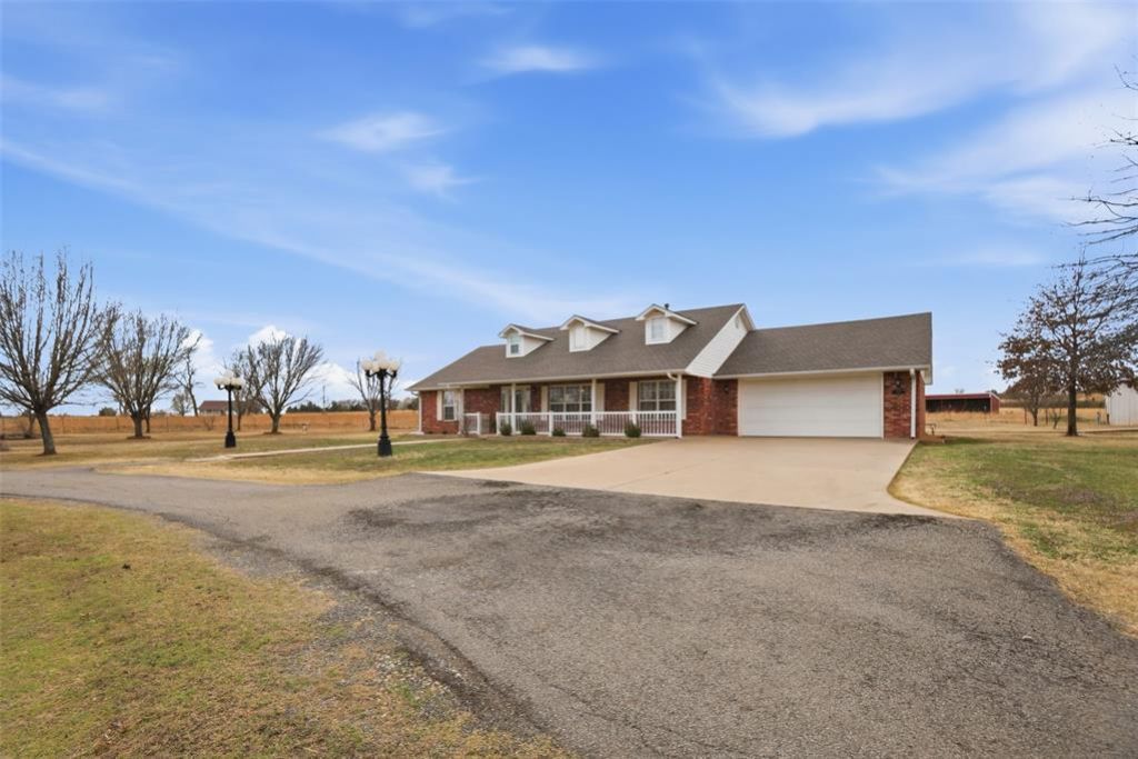 Welcome to your incredible slice of Oklahoma paradise! Built in 2004, this beautiful and thoughtfully updated 3-bedroom, 2-bath home sits on 10 cleared acres, offering the perfect blend of peaceful country living and convenience to town.Step inside to a bright, inviting interior featuring a desirable split floor plan and stunning upgrades throughout. Recent improvements include a 2025 roof, fresh interior paint, new hardware and fixtures, brand-new luxury flooring, and all new stainless steel LG appliances. Every detail has been carefully refreshed - and it shows.The private owner's retreat is a true sanctuary with hardwood floors, a spacious walk-in closet, dual vanity, and a walk-in shower designed for comfort and style. On the opposite side of the home, two spare bedrooms feature fresh carpet, built-in shelving in the closets, and wonderful natural lighting.Outdoors is where this property truly shines. The mostly fenced 10 acres of pasture make it ideal for horses or cattle, complete with a pond and a 15x18 lean-to shelter ready for livestock.And the shops? They are a rare and valuable find. The impressive 40x60 insulated shop includes concrete floors, electricity, water access at the deer processing station on the backside, and automatic doors - perfect for equipment, projects, or serious workspace needs. A second 20x40 shop offers concrete floors and a manual roll-up door, providing even more room for hobbies and storage.Whether you're dreaming of homesteading, running livestock, storing equipment, or simply enjoying wide open spaces close to town, this property delivers space, functionality, and charm in one incredible package.