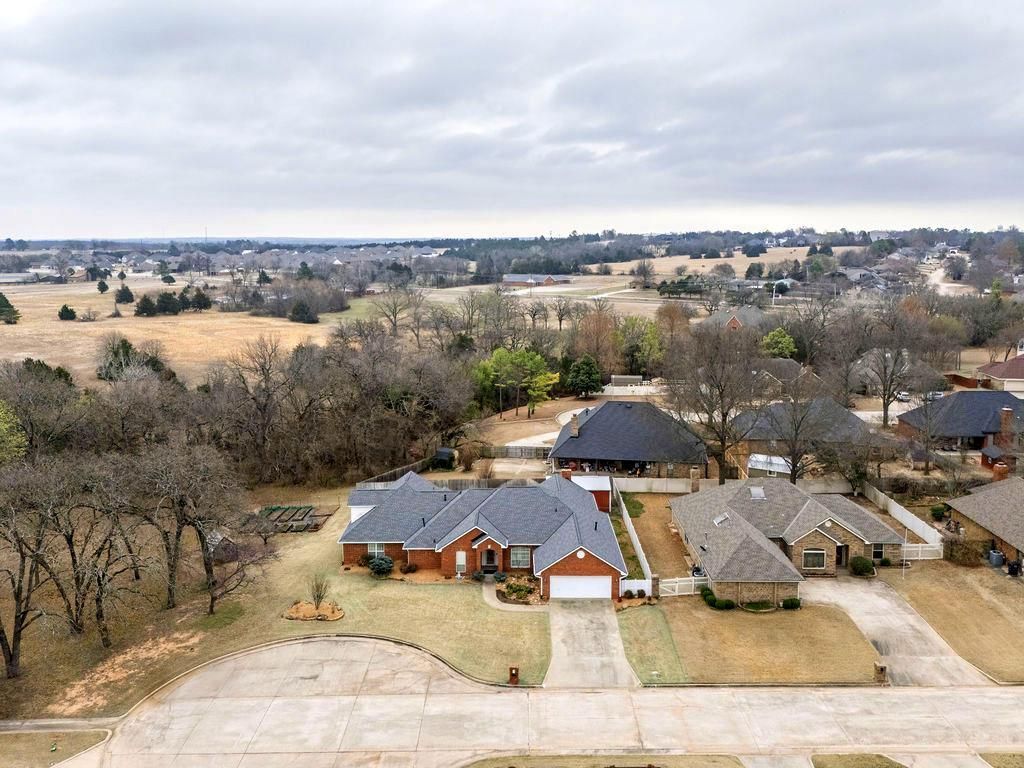 ** 5 Bedrooms | 4 Bathrooms | 2 Living Areas | 2 Dining Areas ** Workshop/Shop Building with Electricity | Greenhouse | Garden Space ** In-Ground Storm Shelter | Sprinkler System | Cul-de-Sac Lot ** Located in the Grove School District. Rare opportunity to own a carefully maintained one-owner home on a quiet cul-de-sac in the Grove School District offering room to spread out with a shop, greenhouse, garden space, and in-ground storm shelter. Enjoy the privacy and reduced traffic that come with cul-de-sac living while still being conveniently located. This spacious home features 5 bedrooms, 4 bathrooms, two living areas, two dining areas, and a 2-car garage, offering a flexible layout ideal for everyday living, entertaining, or multi-generational living. Shortly after purchasing the home, the owners completed a thoughtfully designed addition that expanded the living space. The kitchen includes double ovens, a cooktop replaced in 2024, updated Delta faucets (2022), and newer appliances including a dishwasher and microwave installed in 2022. The kitchen refrigerator, upstairs wine refrigerator, washer, and dryer will remain with the home. Important updates include a new roof in 2023, two of the three HVAC systems replaced in 2022, a LiftMaster garage door opener installed in 2022, and updated ceiling fans throughout. Outdoor features truly set this property apart, including a sprinkler system, concrete workshop with electricity, greenhouse, garden area, fenced dog run, and an in-ground storm shelter for added safety. The home also includes LeafFilter gutter guards with a lifetime transferable warranty and sits next to a vacant lot that has remained undeveloped, adding to the sense of privacy. Homes offering this much space, functionality, and outdoor amenities in the Grove School District rarely become available.
