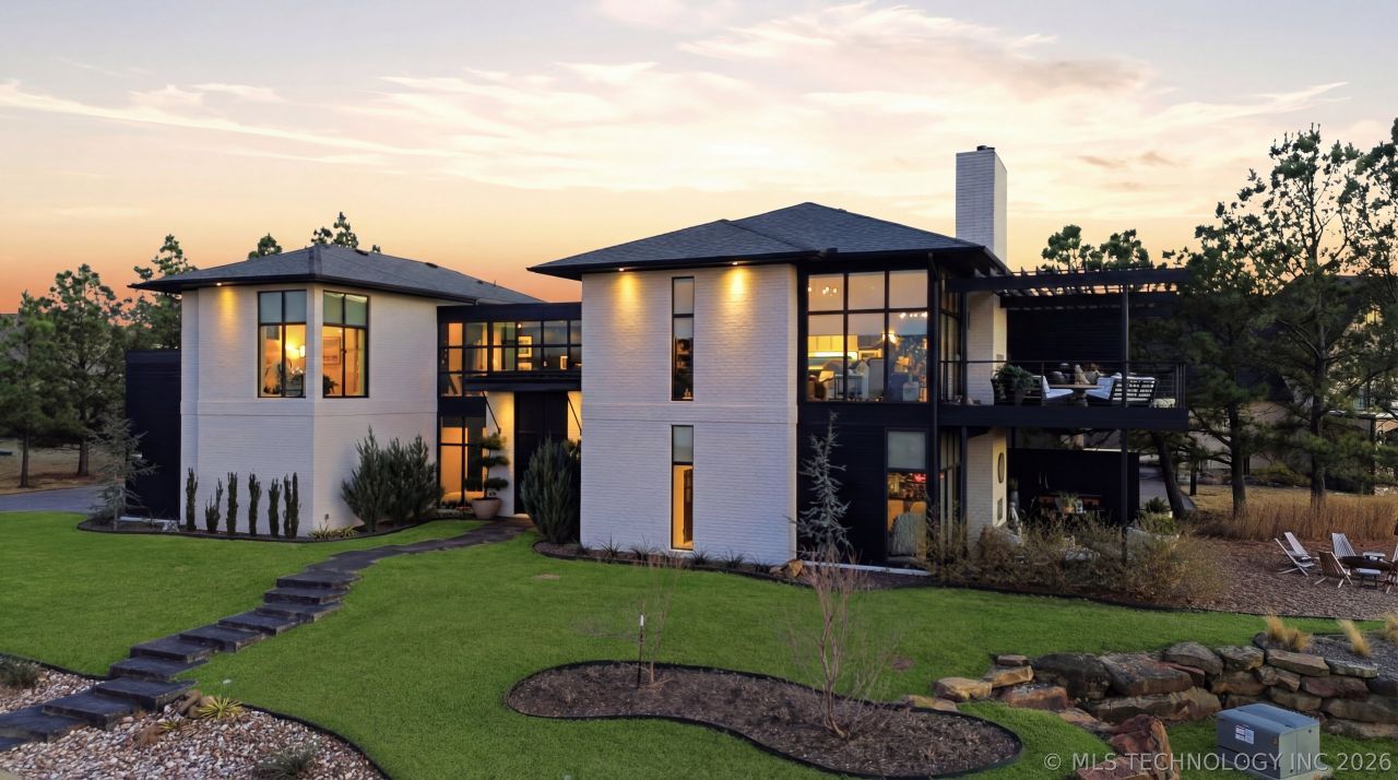 Welcome to your private retreat at Lake Skiatook, where contemporary design, breathtaking views, and effortless lake living come together in perfect harmony. Tucked inside a private, gated cul-de-sac, this completely updated home offers stunning water views and the kind of lifestyle most people only dream about. From the moment you enter, expansive walls of windows frame sparkling lake views and fill the home with natural light. Clean architectural lines and soaring 10- and 11-foot ceilings create a bright, open atmosphere that feels both sophisticated and inviting. Every space has been thoughtfully updated with modern finishes and refined details, creating a home that is as beautiful as it is comfortable. At the center of the home, the gourmet kitchen is designed to impress. High-end appliances, custom cabinetry, generous prep space, and an oversized island make it the perfect setting for everyday living and effortless entertaining. The open-concept living spaces flow seamlessly together, allowing lake views to remain the focal point while creating a warm and welcoming environment for gathering with family and friends. A dedicated office with a built-in Murphy bed offers incredible flexibility, easily transforming from an inspiring workspace to comfortable guest accommodations. An in-home elevator provides convenient access between levels, adding both comfort and accessibility. Step outside and experience outdoor living designed for year-round enjoyment. A spacious patio with a cozy fireplace creates the perfect place to relax after a day on the water. Whether hosting sunset dinners, enjoying quiet mornings with coffee, or unwinding beneath the evening sky, every moment here feels special. Boating at sunset, paddleboarding in the morning, and peaceful evenings overlooking the lake-this is more than a home. It's a lifestyle defined by beauty, privacy, and effortless luxury.